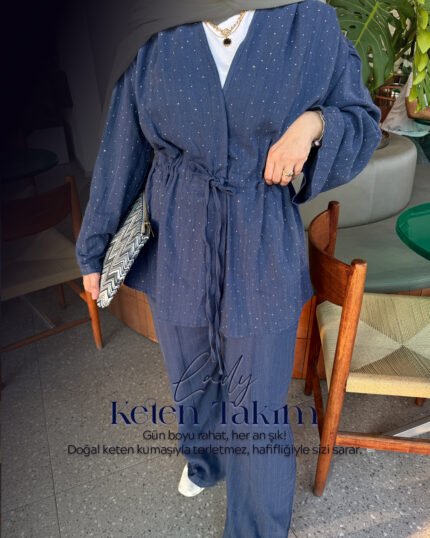 ₺400,00 KDV DahilPırıltılı Keten Takım – Indigo, L/XL